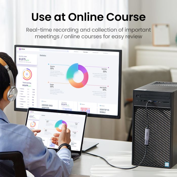 Ugreen adapter za snimanje slika omogućuje vam strujanje ili snimanje slika putem HDMI kabela na USB-C (USB A) priključak na računalu pomoću softvera.