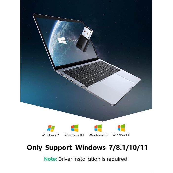 Bluetooth 5.0 adapter pogodan za Windows 11, 10, 8.1, 7 32/64 bit, ali ne radi s Mac OS-om, Linuxom, automobilskim sustavima, televizorima.