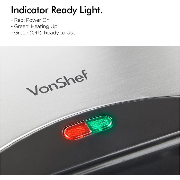 - VonShefov dvostruki aparat za belgijske vafle od nehrđajućeg čelika omogućuje vam da svojim jutrima dodate dašak luksuza i pripremite dva ukusna belgijska vafla, pečena točno po vašoj želji, za nekoliko minuta.