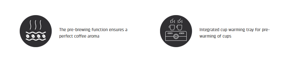 Zahvaljujući snažnoj ULKA pumpi od 20 bara i visokokvalitetnom dvostrukom termoblok sustavu s funkcijom prethodne infuzije, možete pripremiti napitke od kave s savršenom kremom i punim okusom. Automatski sustav za pjenjenje mlijeka jednim dodirom osigurava kremastu mliječnu pjenu jednim dodirom gumba - idealno za latte macchiato i druge mliječne kave, bez obzira koristite li konvencionalno mlijeko ili biljne alternative.