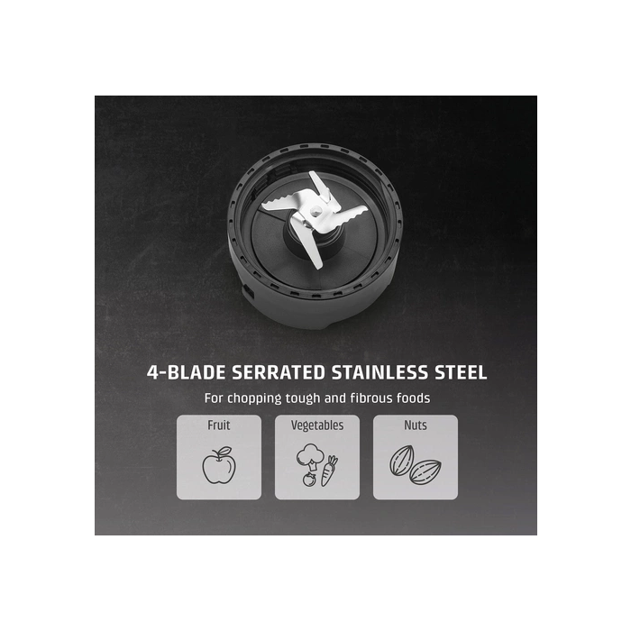 U srcu blendera nalazi se vrhunska četverokraka oštrica od nehrđajućeg čelika s nazubljenim rubovima. Ovaj robusni sustav rezanja lako se nosi s vlaknastim i tvrđim sastojcima te pruža glatke, kremaste rezultate. Od osvježavajućih smoothieja do ukusnih umaka, precizno i snažno miksanje podiže vaše kreacije na višu razinu.