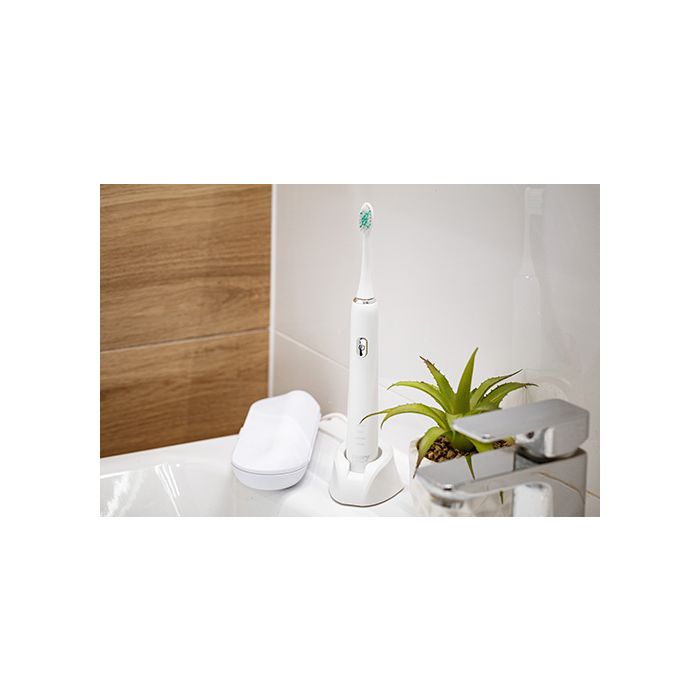 Četkica je vodootporna, tako da je možete sigurno koristiti prema uputama bez brige da ćete dodirivati uređaj mokrom rukom. Set uključuje dvije zamjenjive glave, indukcijski punjač i elegantnu kutijicu, zahvaljujući kojoj četkicu za zube možete ponijeti sa sobom na putovanje ili je odličan poklon za voljenu osobu.