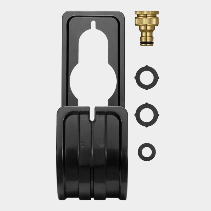 Set uključuje sve što vam je potrebno za jednostavan rad u vrtu: priključak za slavinu od 3/4”, adapter od 1/2” za univerzalnu upotrebu, rezervne brtve i ljepljivu traku za popravke, vrećicu za pohranu koja ne ostavlja dlačice i kuku za pričvršćivanje. Kuku možete jednostavno objesiti na vanjsku slavinu ili je pričvrstiti na zid (vijci za montažu na zid nisu uključeni).