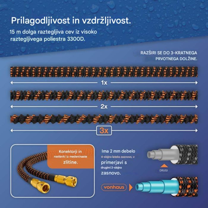 - Crijevo vrtno VONHAUS, rastezljivo, 30m