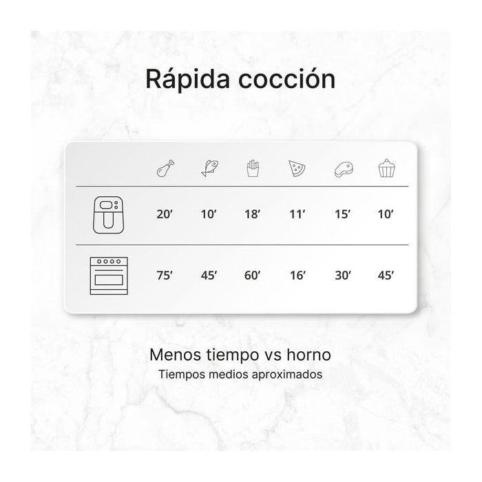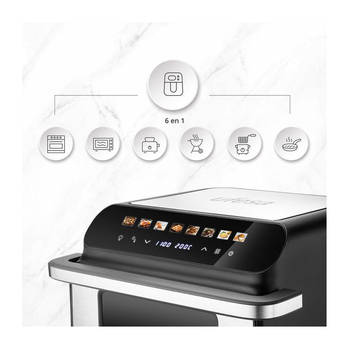 S kapacitetom od 10 litara i snagom od 2000 W, idealan je za pripremu obroka za 6 do 8 osoba. Gornji zaslon u boji osjetljiv na dodir omogućuje jednostavnu kontrolu vremena (0-60 min), temperature (80 °C-230 °C) i odabir 8 unaprijed postavljenih programa za različita jela.