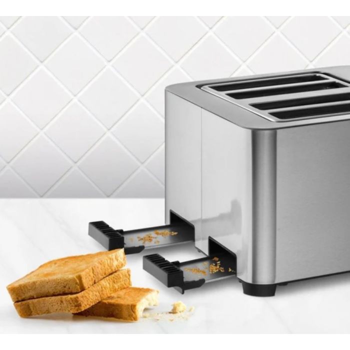 Njegov elegantan dizajn ima kućište od nehrđajućeg čelika i LCD zaslon koji vam omogućuje odabir idealne razine pečenja od 7 različitih postavki. Toster ima dva para širokih utora s neovisnim upravljanjem, što vam omogućuje korištenje različitih postavki ili funkcija pečenja za svaki par, tako da možete prilagoditi tost svojim željama.