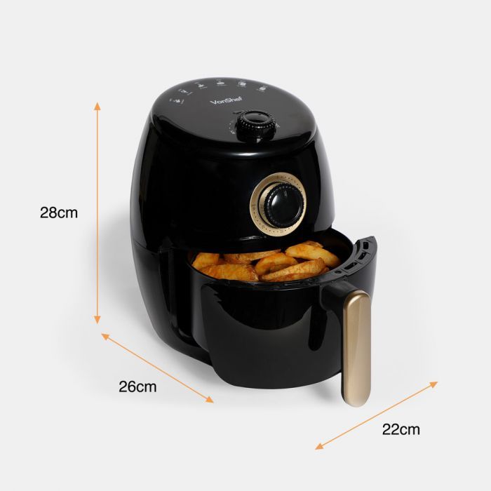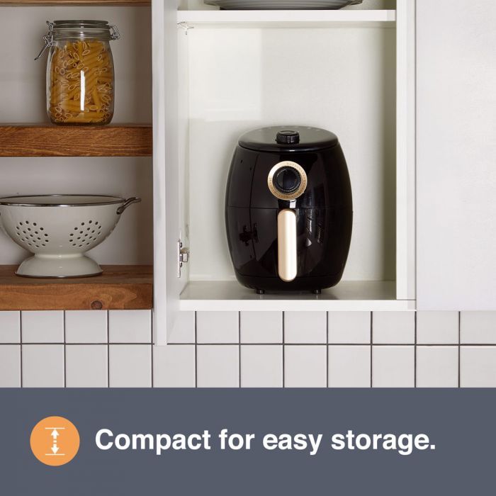 Brza mini pećnica s podesivim rasponom temperature između 80 i 200 stupnjeva Celzija. Kapacitet košare od 2 l daje vam puno prostora, dok vam neprianjajući premaz i timer pomažu da svaki put kuhate s 5 zvjezdica.