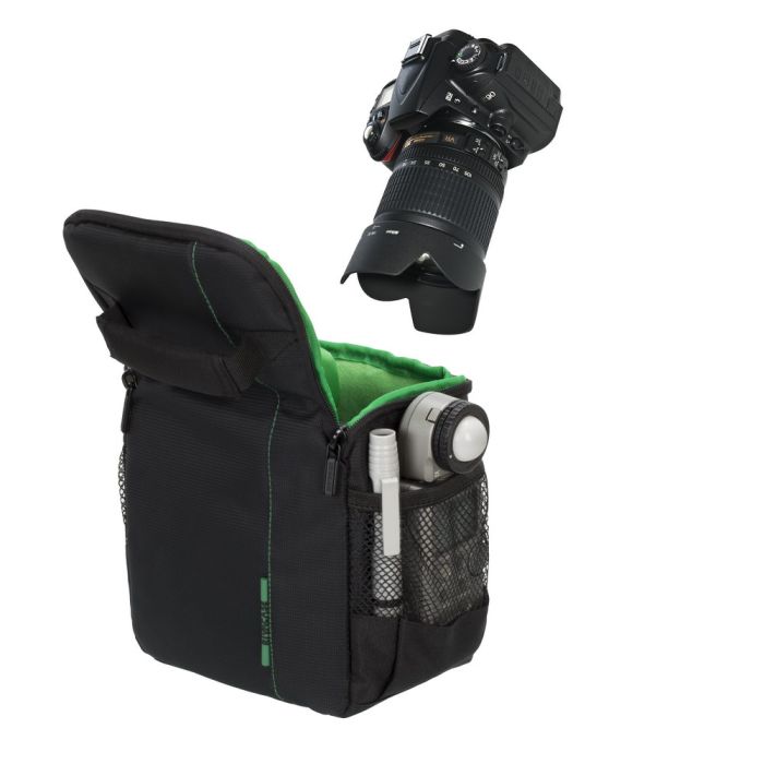 Ova elegantna i moderna torba prikladna je za DSLR fotoaparat s objektivom. Moderna svijetlozelena mekana unutarnja podstava od velura štiti LCD zaslon vašeg fotoaparata od ogrebotina.