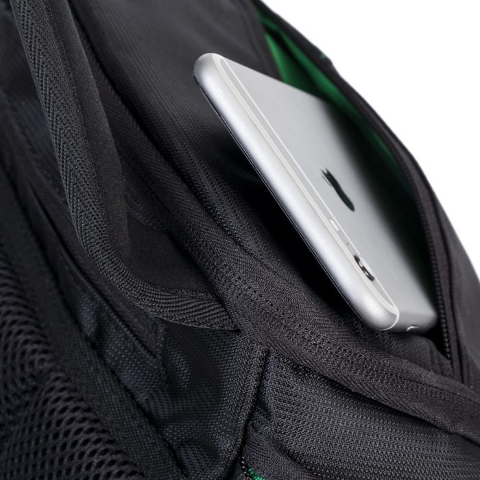 Jarko zelena unutarnja podstava u kontrastu je s tamnocrnim vanjskim tkaninama kako bi izrazila živost i originalnost, dvije ključne kvalitete svakog poduzetnog i proaktivnog fotografa.
