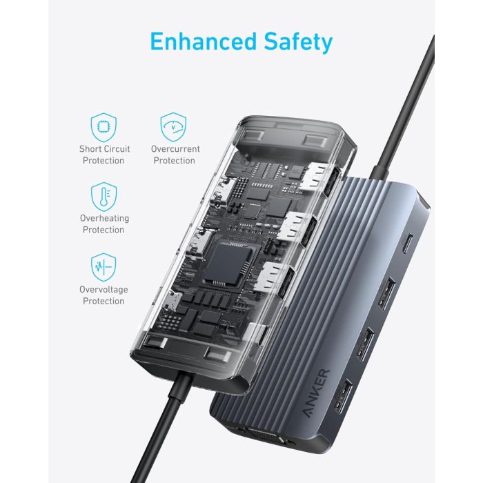Nadogradite svoj radni prostor Anker USB-C Hubom (8-u-1, trostruki zaslon) , koji kombinira vrhunske performanse sa sofisticiranim dizajnom. Dizajniran za profesionalce, ovaj napredni hub omogućuje vam istovremeno spajanje tri monitora, brz prijenos podataka i istovremeno punjenje uređaja - sve to uz održavanje urednog radnog prostora.