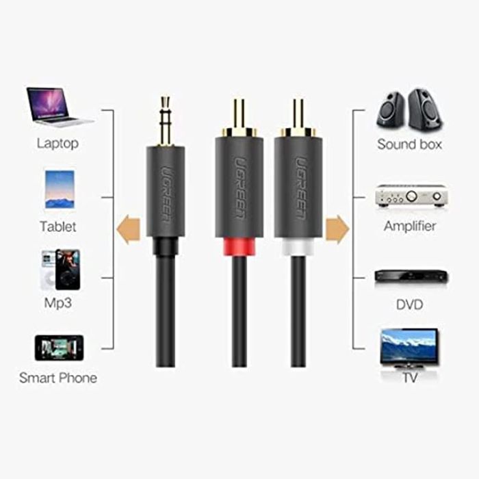 - Kabel UGREEN audio 3,5mm na 2x RCA, 2m (10510)