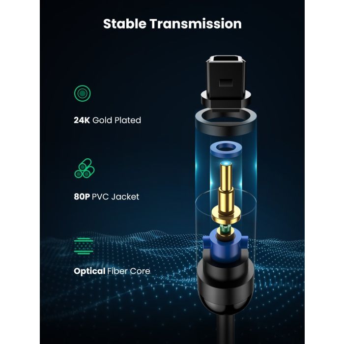 Toslink optički audio kabel dizajniran je za spajanje uređaja s digitalnim optičkim sučeljem (S/PDIF) na prijemnik, procesor zvuka ili digitalno-analogni pretvarač, kao što su Blu-Ray playeri, DAT snimači, DVD playeri i drugi audio uređaji. Optički kabeli sprječavaju radiofrekvencijski šum koji se može pojaviti kod običnih električnih kabela.