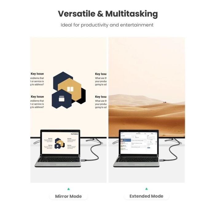 Ugreen USB Type-C na HDMI kabel omogućuje vam jednostavno povezivanje s USB-C uređajima. Jednostavno spojite telefon na televizor i moći ćete reproducirati svoje snimke svojim voljenima ili kolegama. Podržava rezoluciju do 4K*2K @60Hz.