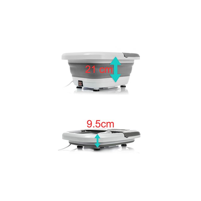 Sklopiva masažna kada s ručkom za nošenje. Savršena za njegu i opuštajuće tretmane i masaže. Omogućuje različite vrste masaže: s mjehurićima ili s vibracijama. Uređaj za masažu pozitivno utječe na cirkulaciju krvi u stopalima, što dodatno masira živce na tabanima i blagotvorno djeluje na cijelo tijelo.