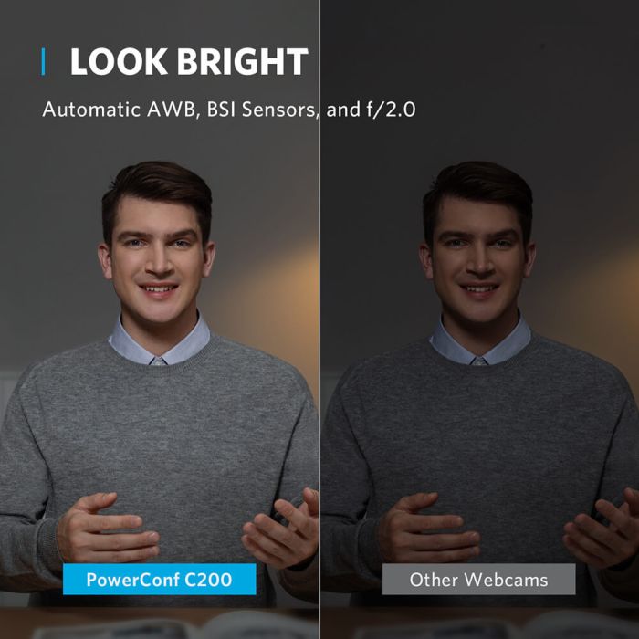 - Izgledajte sjajno u bilo kojem svjetlu : Veći otvor blende hvata više svjetla, pa čak i bez prstenastog svjetla, s ovom PC web kamerom možete izgledati svijetlo i profesionalno u uvjetima slabog osvjetljenja.