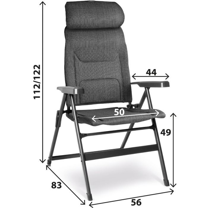 Popularna sklopiva kamperska stolica Vitachic nadograđena je jastukom podesivim po visini za veću udobnost i potporu. Dizajnirana isključivo u veličini M i s izuzetno kompaktnom veličinom kada je sklopljena, idealan je pratitelj za sve vrste aktivnosti na otvorenom.