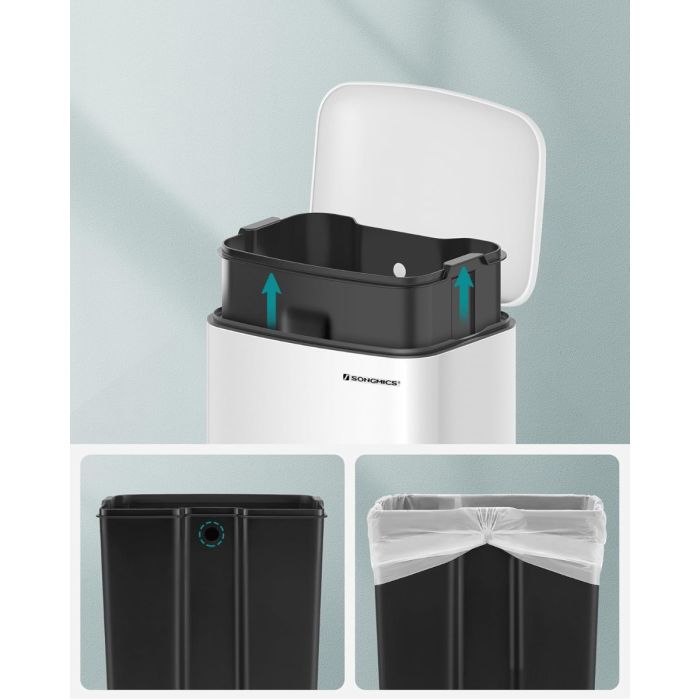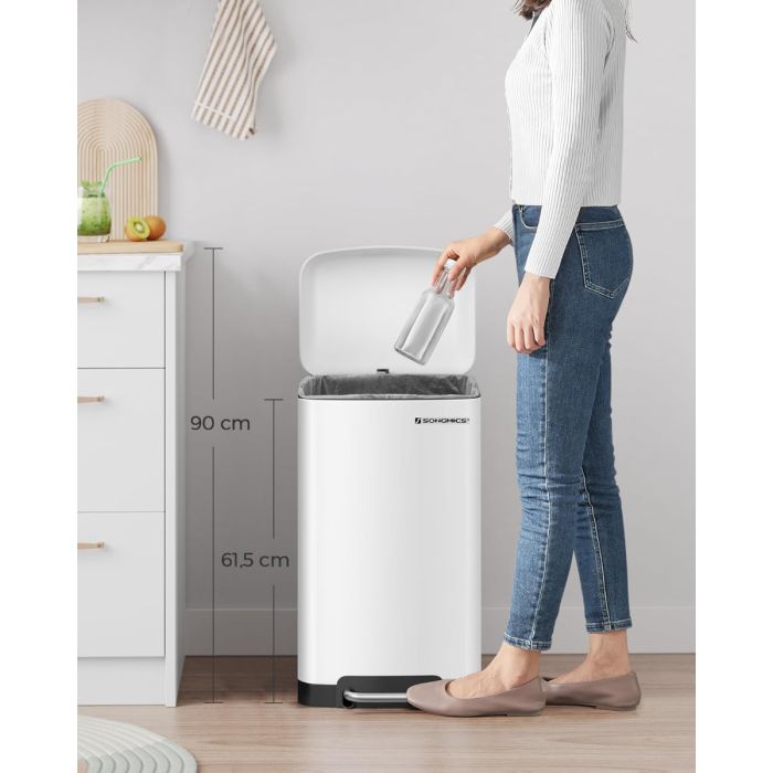 - Kanta za otpad SONGMICS, čelična, pedalna, 30 L, s unutarnjom kantom i mekanim zatvaranjem, bijela
