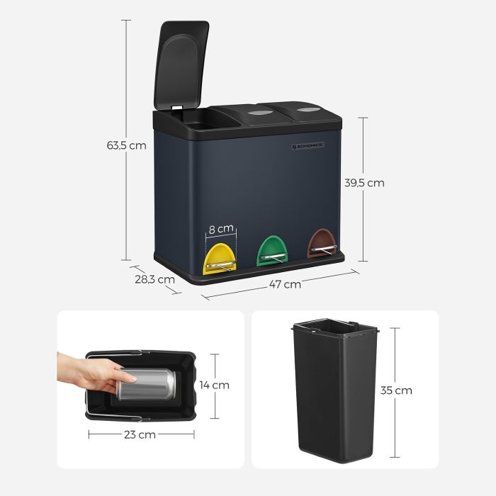 - Kanta za reciklažu SONGMICS, pedalna, 3u1