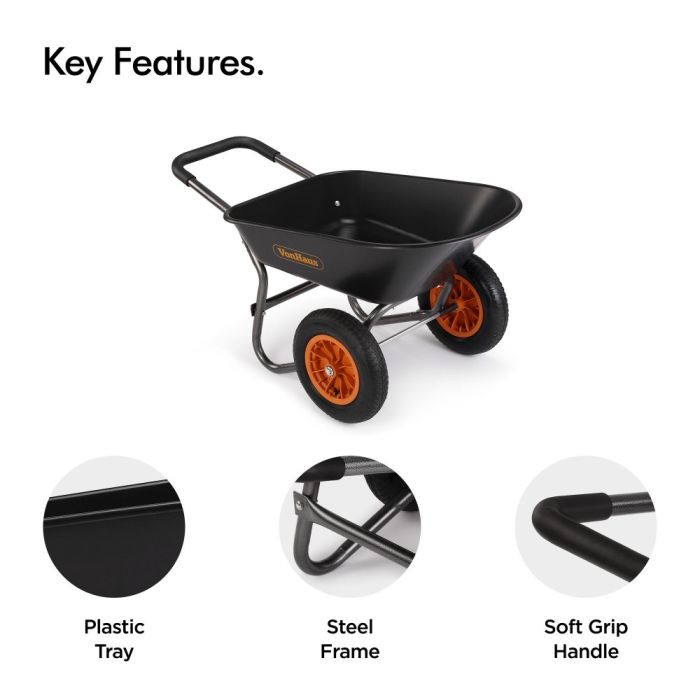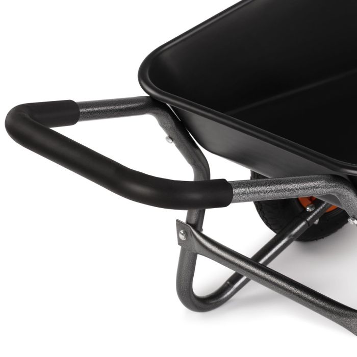 - Napuhani dvostruki kotači pružaju stabilnost na neravnom tlu, a mekane ručke pružaju udoban hvat, što olakšava podizanje i nošenje vrtnog pribora.