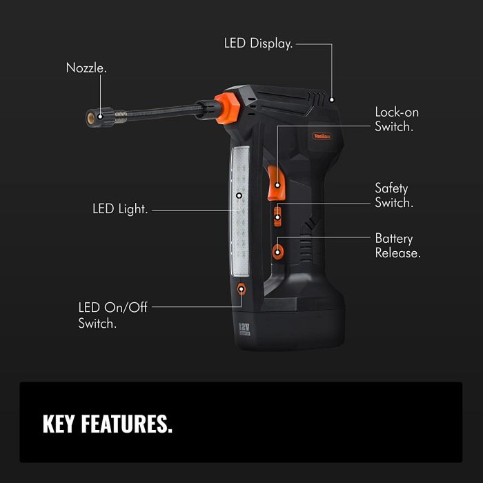 - Kompresor VONHAUS, za gume, 12V, s digitalnim manometrom