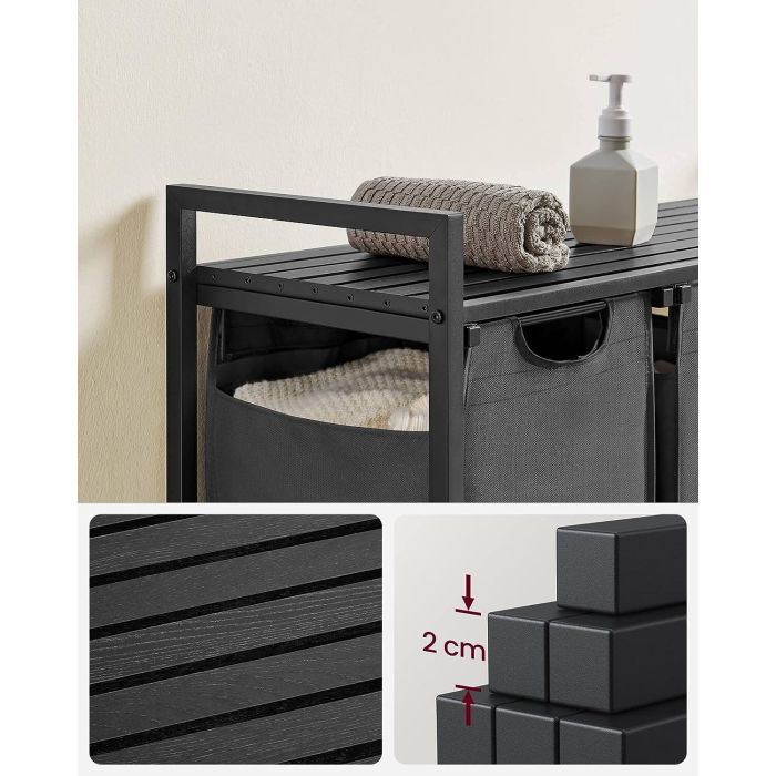 Čvrsta i stabilna : Ova košara za rublje, izrađena od okvira od čeličnih cijevi od 2 cm i MDF ploče , podržava do 20 kg na gornjoj polici. Osim toga, svaka košara izrađena je od vodoodbojne Oxford tkanine, a četiri podesive nožice osiguravaju stabilnost.