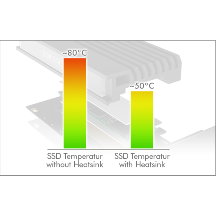 IB-PCI214M2-HSL nudi dovoljno snage hlađenja s uključenim termalnim jastučićima i velikim hladnjakom, tako da možete uživati u punoj snazi svog M.2 SSD-a u svakom trenutku.