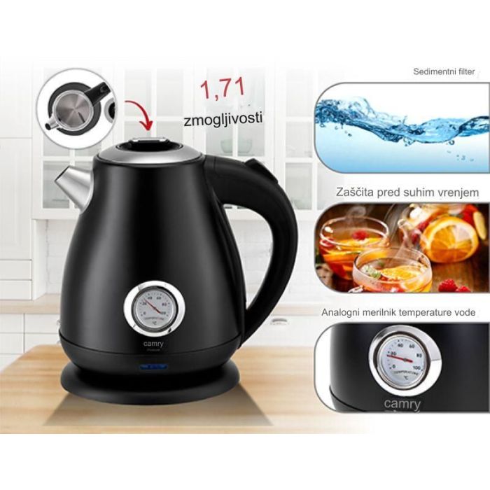 Camry električno kuhalo za vodu s termometrom 1.7L CR 1344 crno