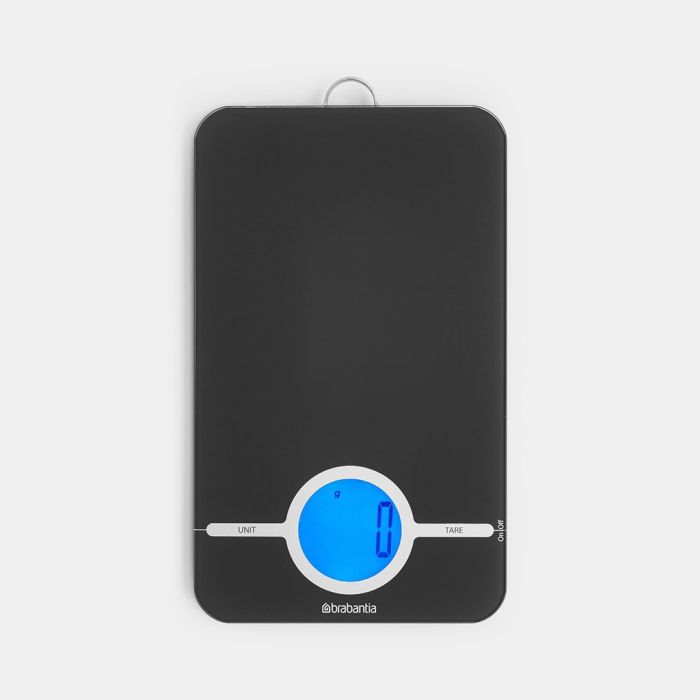 Jeste li umorni od kuhinjskih aparata koji svi izgledaju isto? Kuhinjska vaga Brabantia uvjerit će vas svojim izgledom, izdržljivošću i točnošću, jer možete mjeriti od 1 g do 5 kg. Osim toga, vaga ima metalnu kuku na stražnjem rubu, tako da je možete objesiti i uvijek će vam biti pri ruci. Težina se prikazuje na LCD zaslonu s pozadinskim osvjetljenjem, tako da težinu možete vidjeti i u manje osvijetljenim kuhinjama.
