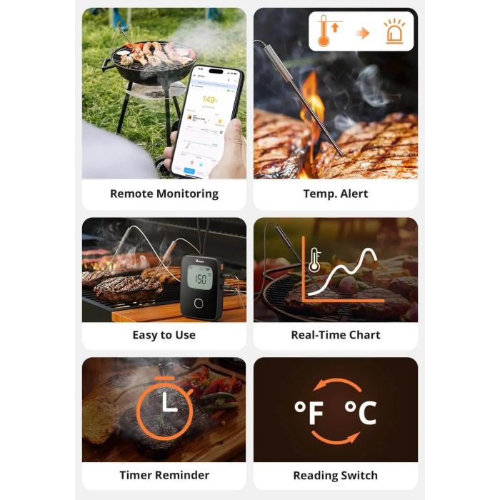 SONOFF BBQ termometar za meso prenosi podatke o temperaturi izravno na vaš telefon, tako da možete provjeriti temperaturu mesa s roštilja u bilo kojem trenutku. - Upozorenja o temperaturi