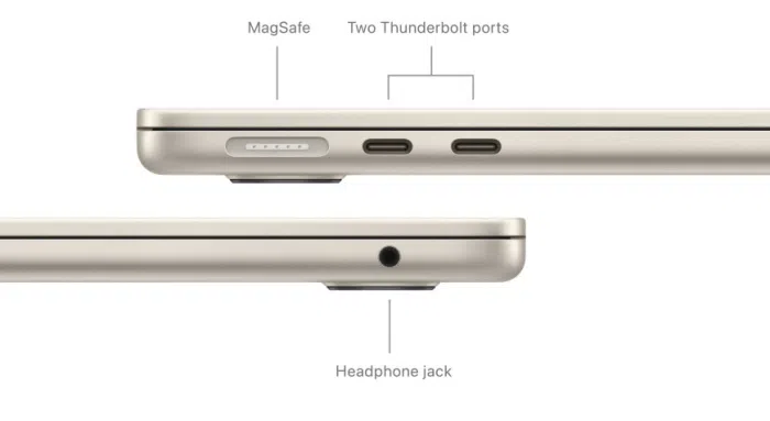 MagSafe kabel za punjenje lako se pričvršćuje i odvaja pomoću magneta, sprječavajući nenamjerno letenje. Dva Thunderbolt priključka omogućuju vam spajanje brzih dodataka i punjenje vašeg Maca. A priključak za slušalice podržava slušalice visoke impedancije. S modelom M3 možete pristupiti Wi‑Fi 6E, koji ima do 2x bržu propusnost u usporedbi s Wi‑Fi 6.
