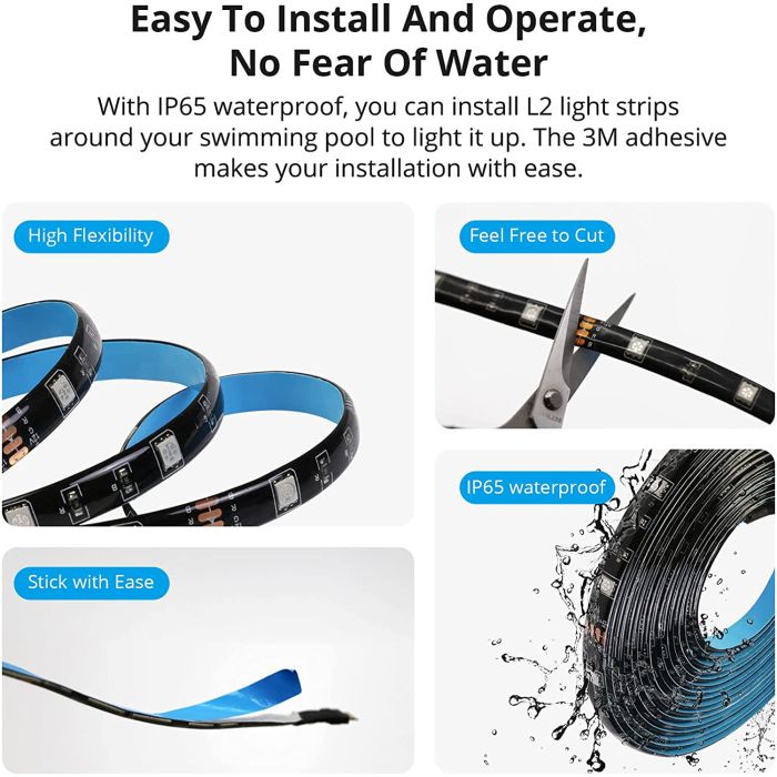 4.) Razlika između modela L1 i L2: L2 uključuje povezivost LED trake s aplikacijom eWeLink putem Bluetooth protokola Tehničke specifikacije: