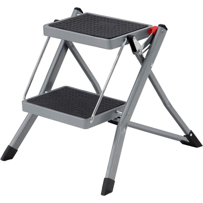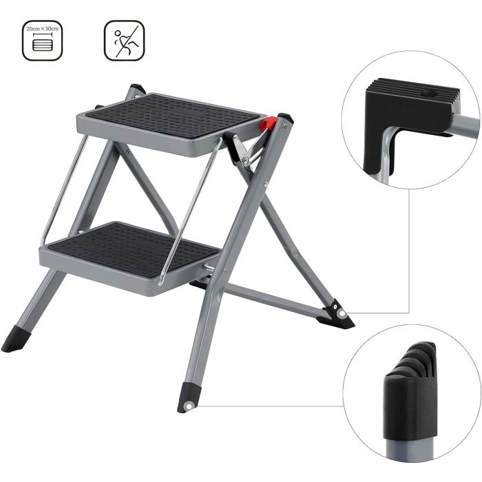 SONGMICS GSL002GY01 Sklopive ljestve s 2 stepenice 20 cm Protuklizna guma s rukohvatom Nosivost 150 kg Čelik Siva i crna