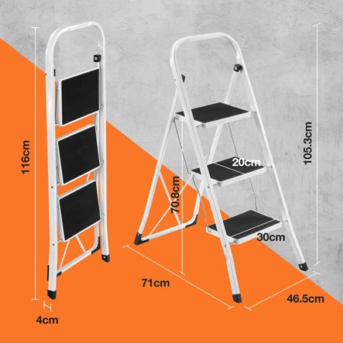 Ljestve su dizajnirane imajući na umu i sigurnost i praktičnost, jer uključuju 3 široke stepenice s protukliznim gazištima kako bi se spriječilo klizanje.