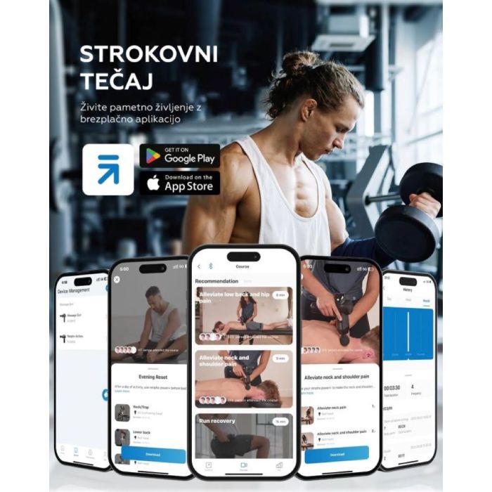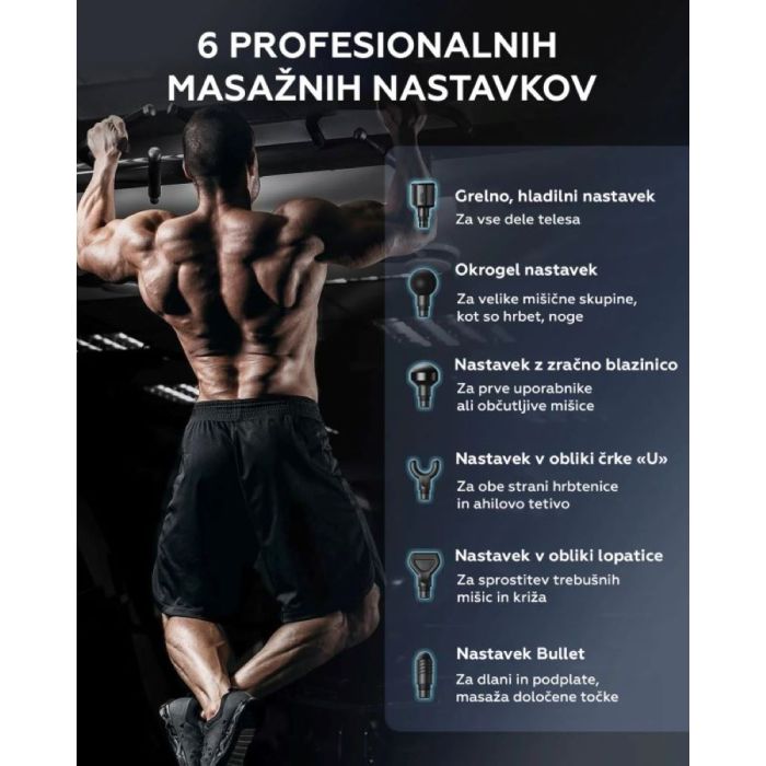 Možete birati između 6 profesionalnih masažnih glava dizajniranih za različite mišićne skupine i prilagoditi intenzitet masaže od 1 do 6 za ciljanije olakšanje.