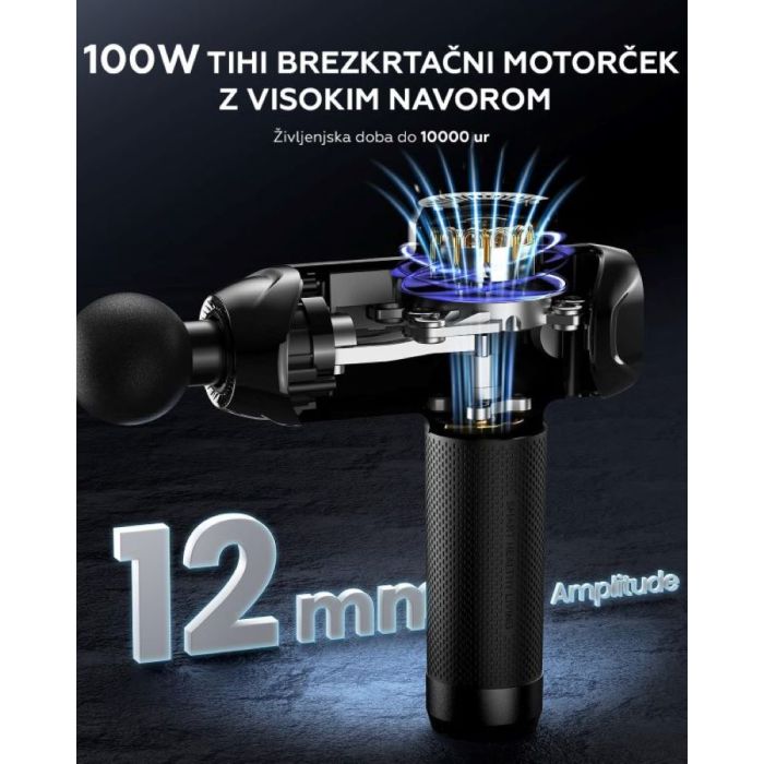 Opremljen je motorom bez četkica visokog okretnog momenta s amplitudom od 12 mm koji pruža intenzitet masaže do 23 kg za ublažavanje napetosti mišića, ukočenosti i boli.