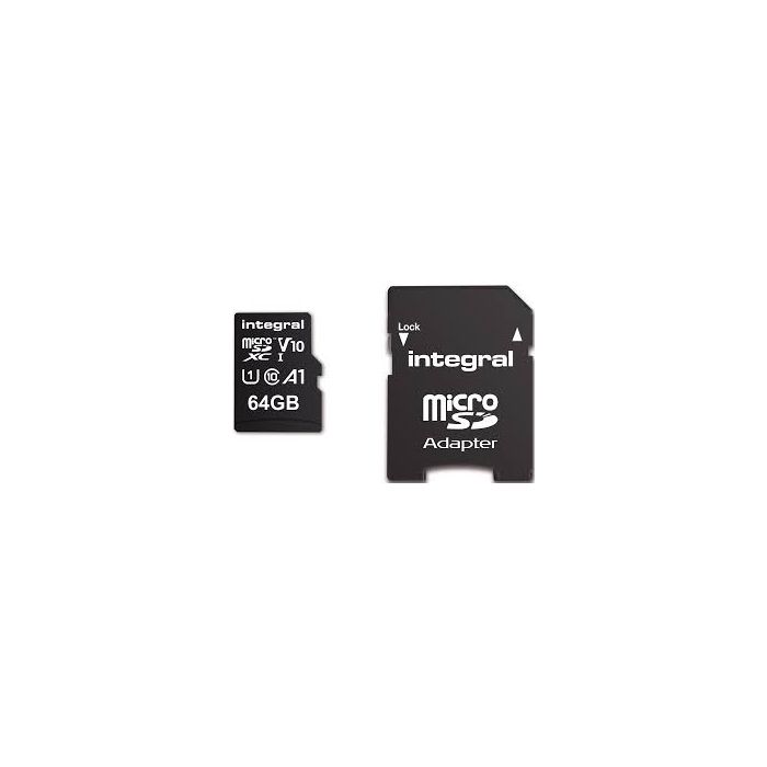 - Memorijska kartica microSDHC/XC 64GB, INTEGRAL, V10, UHS-I U1, adapter