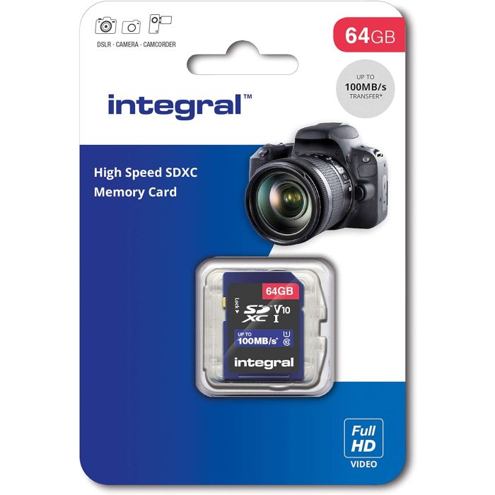 - Memorijska kartica SDXC 64GB, INTEGRAL, High Speed, V10, UHS-I U1, do 100MB/s