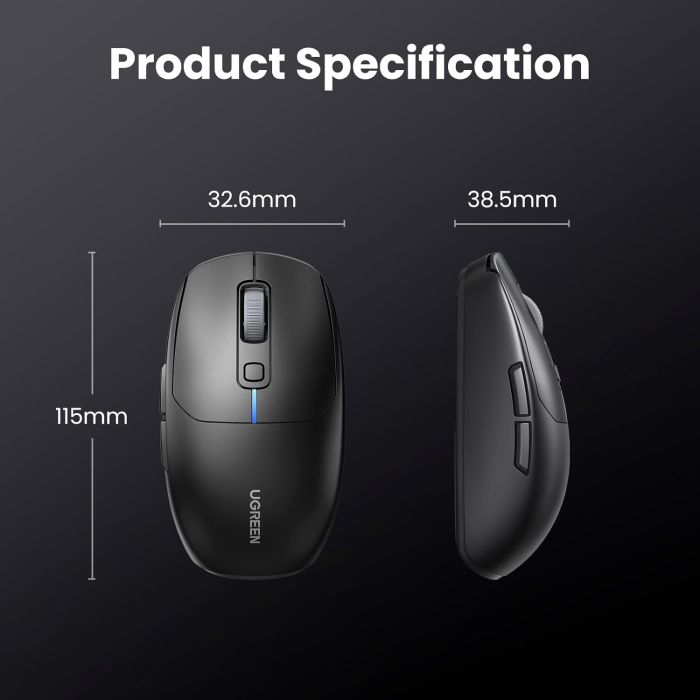 - Miš UGREEN bežični, 5000DPI, 2.4G+BT, crni