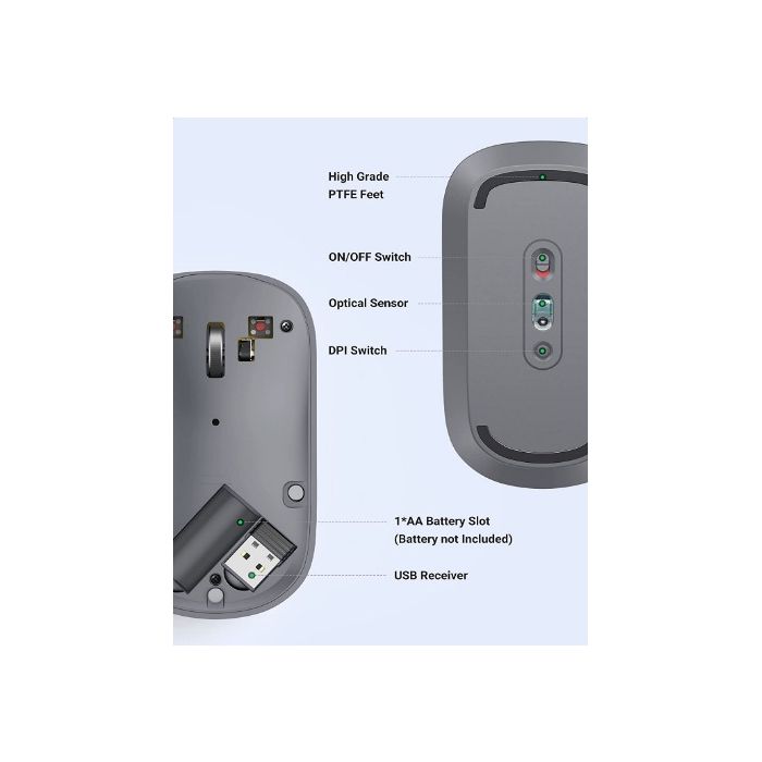 UGREEN bežični miš je tanak i tih miš koji radi na 2,4 GHz s 4000 DPI i zahvaljujući naprednom čipu, može raditi do 18 mjeseci s jednom baterijom (nije uključena).