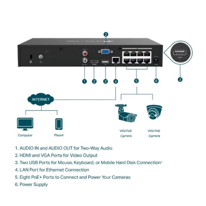 Mrežni video snimač TP-LINK VIGI, 8-kanalni, PoE+