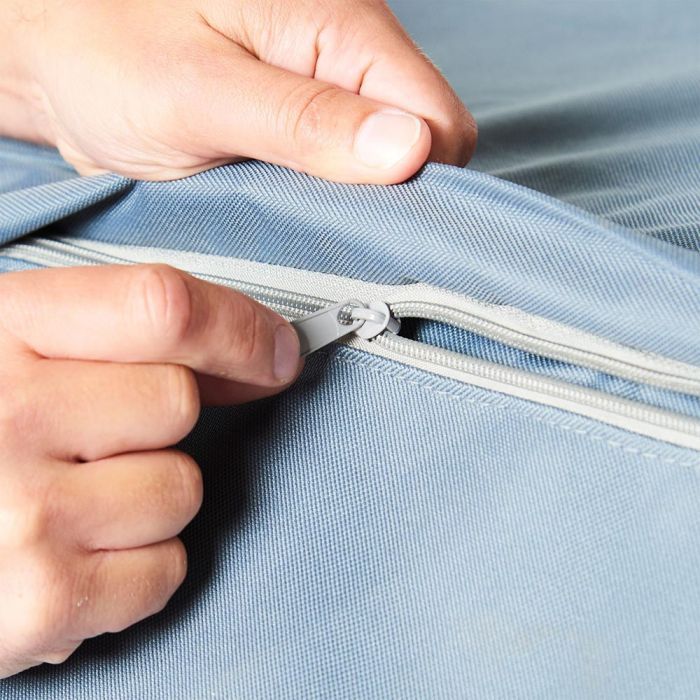 - Ima elastični rub s vezicama, kopčama i drukerima za sigurno i prilagođeno pristajanje te ručke za jednostavno postavljanje. Također ima pokrivene otvore za ventilaciju kako bi se smanjila kondenzacija i napuhavanje od vjetra. Tu je i praktični džep s patentnim zatvaračem kako biste svoje potrepštine za roštiljanje držali pri ruci.