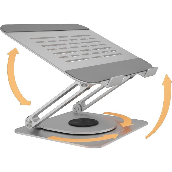 Stolni stalak ICYBOX IB‑NH300‑R je elegantan i izdržljiv stalak za prijenosna računala do 43 cm (17″). Njegov ergonomski dizajn omogućuje podešavanje visine, nagiba i rotaciju od 360° za optimalni kut gledanja - idealan za prezentacije ili rad s više korisnika. Visokokvalitetna aluminijska konstrukcija osigurava lakoću i stabilnost, dok silikonski jastučići sprječavaju klizanje uređaja. Utori na površini poboljšavaju hlađenje. Sklopivi dizajn omogućuje jednostavno skladištenje i transport. Pogodan je za urede, prezentacije ili kućnu upotrebu.