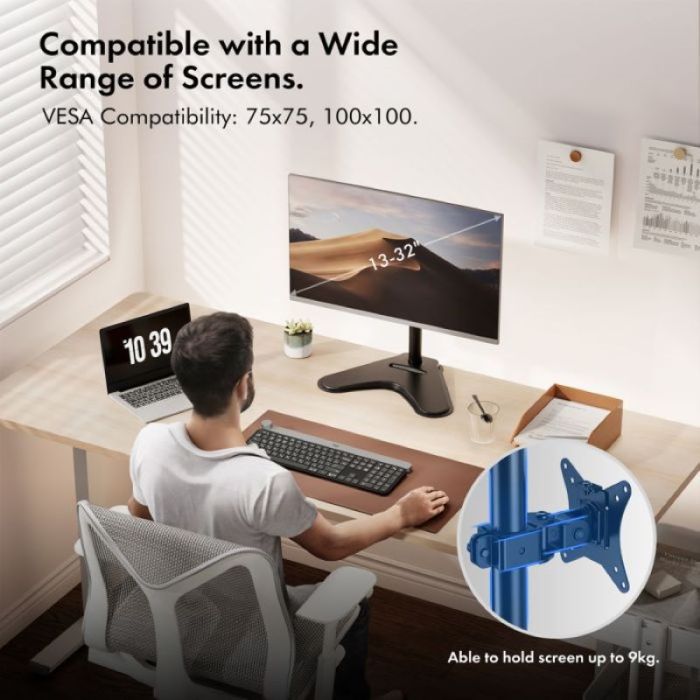Kompatibilan s većinom LCD monitora i TV ekrana od 13”-32” s VESA dimenzijama 75 x 75 i 100 x 100.