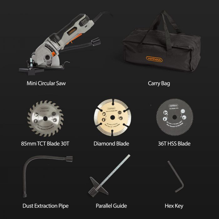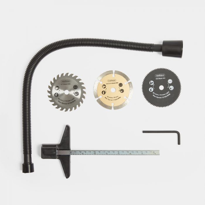 Kako biste se lakše nosili s raznim materijalima, uključene su tri višenamjenske oštrice: oštrica od brzoreznog čelika, dijamantna oštrica i oštrica pile s vrhom od volframovog karbida. Kapacitet rezanja također se može podesiti između 0 i 27 mm kako bi odgovarao svakoj situaciji.