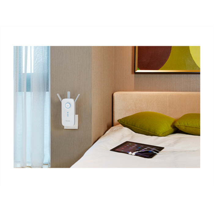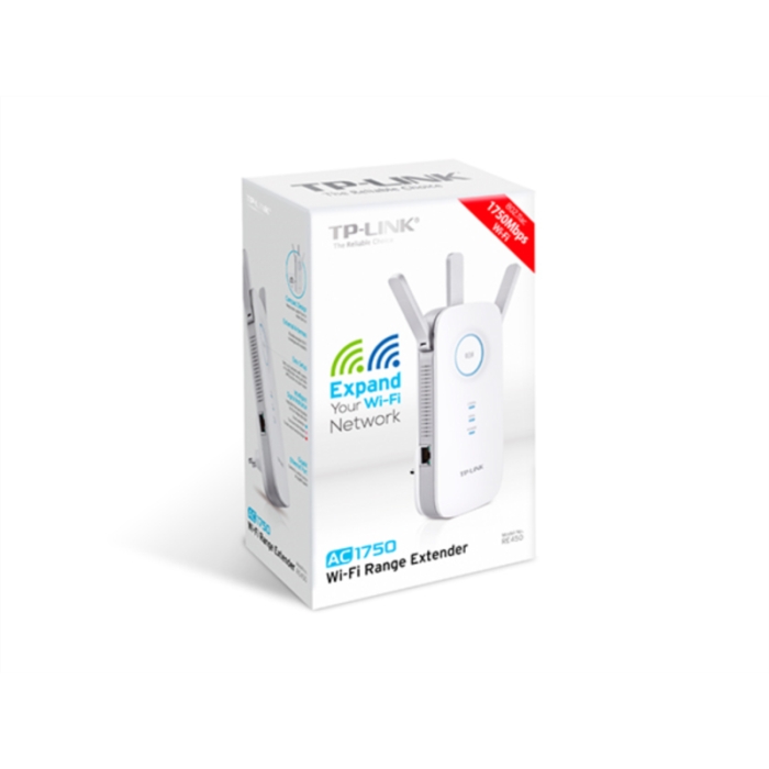 TP-LINK RE450 proširivač dometa proširuje i poboljšava domet vaše bežične mreže i uklanja mrtve točke. Omogućuje rad u dva pojasa s brzinama do 1750 Mbps ili 450 Mbps na frekvenciji od 2.4 GHz i 1300 Mbps na frekvenciji od 5 GHz. S tri podesive vanjske antene i indikatorom koji vam pomaže pronaći optimalnu lokaciju, proširenje mreže je vrlo jednostavno. Podržava sve Wi-Fi standarde, uključujući 802.11ac. Pritiskom na gumb RE možete jednostavno proširiti svoju mrežu. Ethernet priključak (10/100/1000) omogućuje vam spajanje žičnih uređaja.