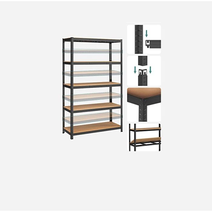 SONGMICS police s 5 razina, čelični stalak za odlaganje, montaža bez alata, za garažu, šupu, nosivost 875 kg, 60 x 120 x 200 cm, crna GLR060B01