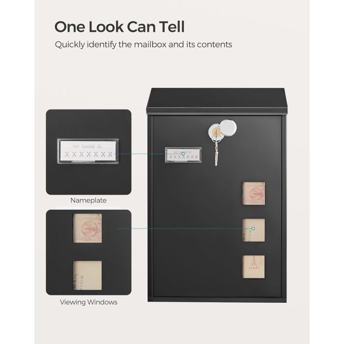Jedan pogled je dovoljan: Čekate li svoju poštu? Tri prozorčića za pregled pokazuju vam ima li što unutra. Također ima mjesta za vaše ime kako bi pošta stigla na pravu adresu.
