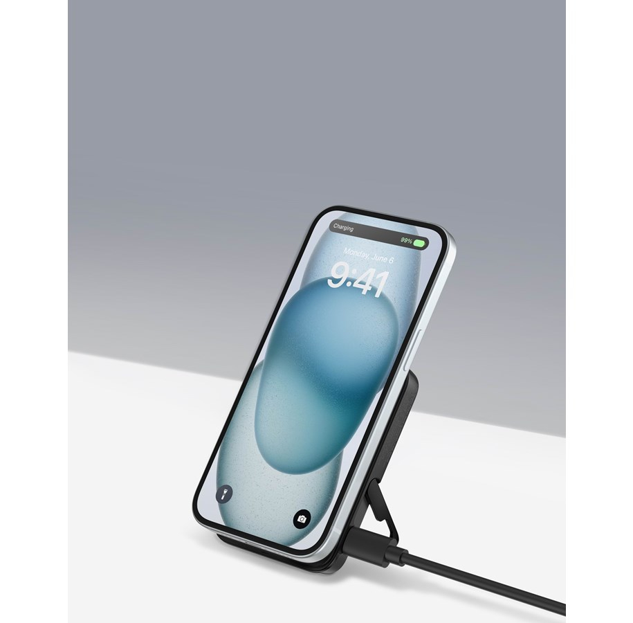 Ovaj bežični punjač lako stane u džep ili torbu, što ga čini savršenim suputnikom za punjenje vašeg iPhonea u pokretu.