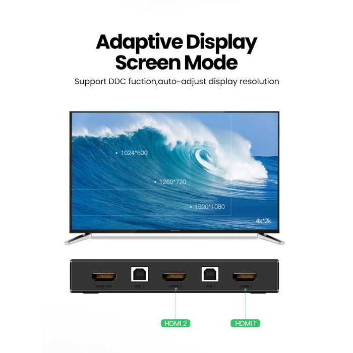 UGREEN KVM preklopnik omogućuje vam upravljanje 2 računala s 4K zaslonom i jednim setom kontrola (miš i tipkovnica).