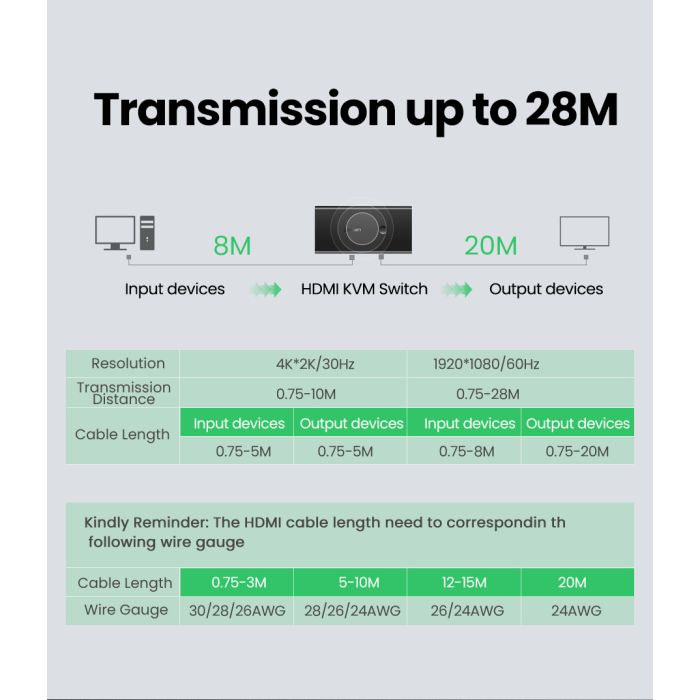 HDMI KVM preklopnik podržava sliku visoke razlučivosti i podržava maksimalnu rezoluciju do 4K@30Hz, kompatibilan s 1080P@60Hz.